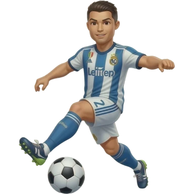 Ronaldo dribbling with a touch into a football While wearing a 2018 real madrid Retro blue kit emoji
