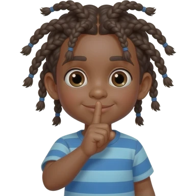 un peit garcon a la peau foncé avec de plusieurs tresses ranger qui fait chut emoji