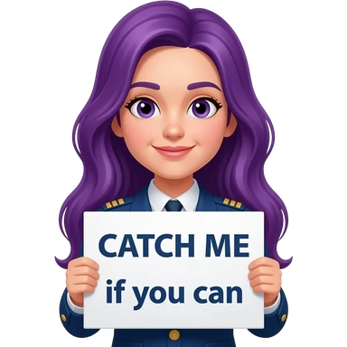 girl with long purple hair with a CATCH ME if you can sign emoji