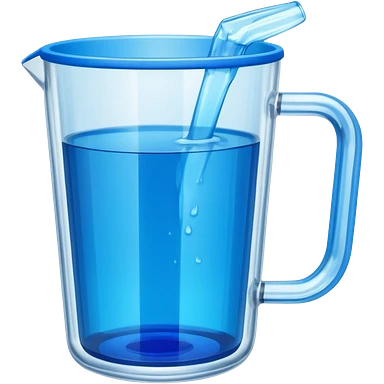 A large clear glass mug with a bright blue liquid inside. Mug had no curve to it, up and down with ridges. Similar to a beer mug. For a drink called a trashcan emoji