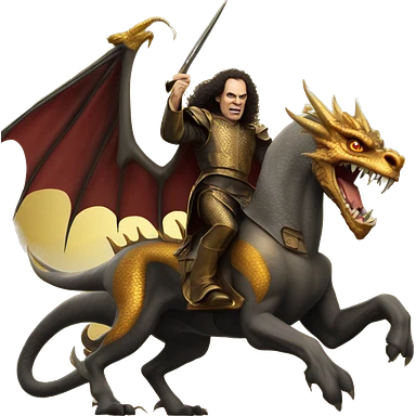 Ronnie james dio with medieval looks riding a golden dragon emoji