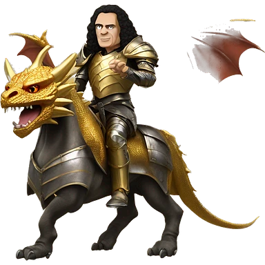 Old ronnie james dio with an armor riding a golden dragon emoji
