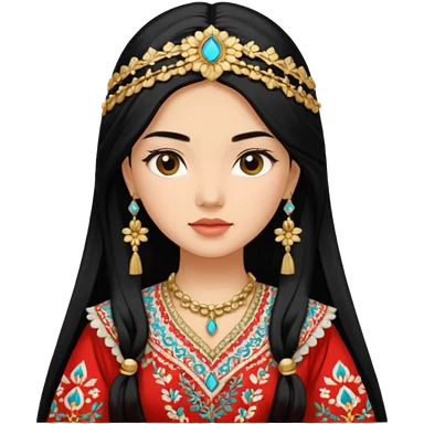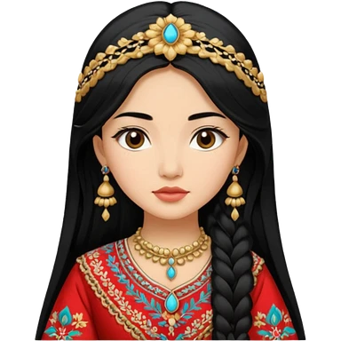 Uzbek girl who has long black hair and beautiful traditional dress emoji
