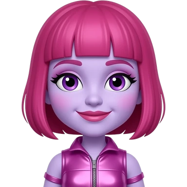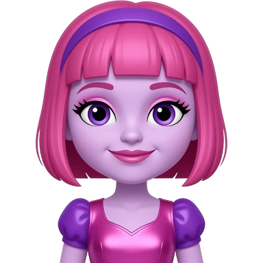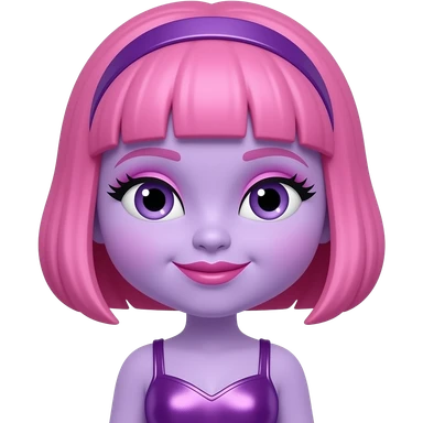 Deedee Doodle from The Doodlebops with lilac skin, purple eyes, pink shoulder-length bob hair, pink eyeshadow and lipstick, pink and purple metallic outfit emoji
