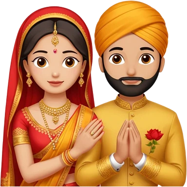 Two hands in a engagement..One hand of groom and one hand of bride. Bride dress - red/yellow saree. groom- light orange punjabi emoji