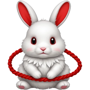 White bunny with red rope tangled around emoji