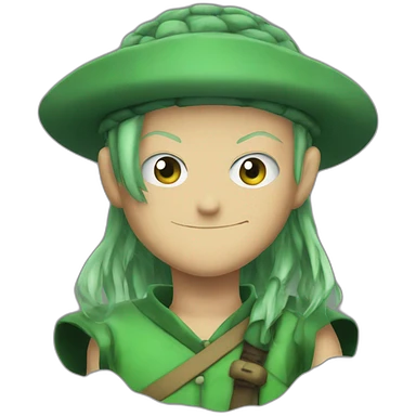 Roronoa Zoro with green hair, three swords, white shirt, green haramaki emoji