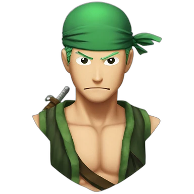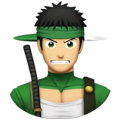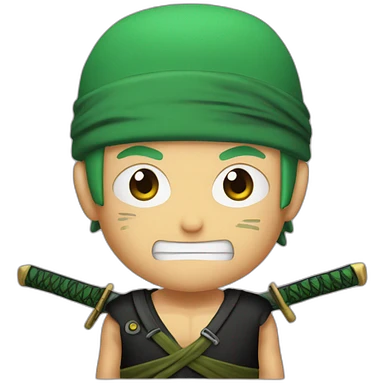 Roronoa Zoro with green hair, three swords, white shirt, green haramaki emoji