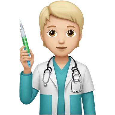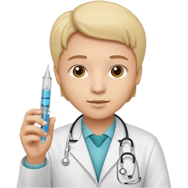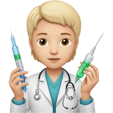 emoji comprando con traje de doctora con una jeringa en la mano emoji