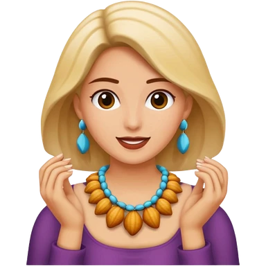 Mujer con collares de conchas comprando emoji