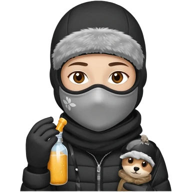 Junge mit Sturmhaube braune augen auf der rechten seite kleinen nasenpircing (glitzerstein) in der Rechten hand eine Jacky flasche und einer winterjacke mit fell an der mütze emoji