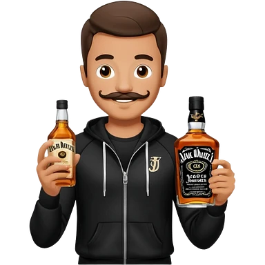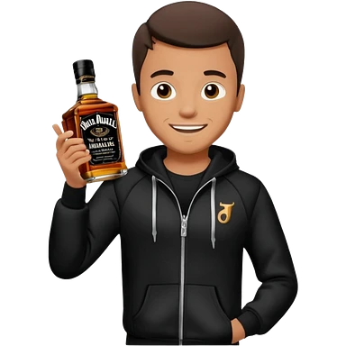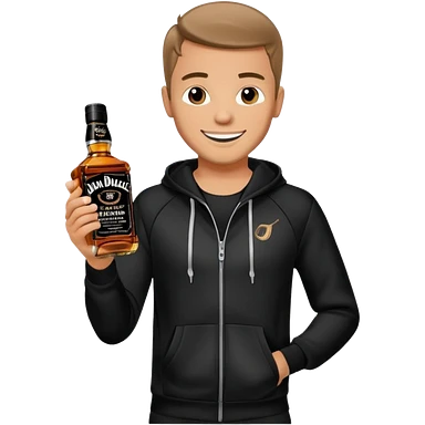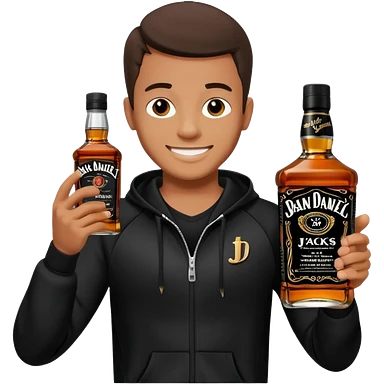 Junge mit schwarzen Jogginganzug und Jacky Flasche in der Hand emoji