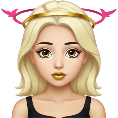 Rosalia (the singer) virgin. (Use lux album cover as reference). Hais black hair with a bleached halo band in hair and gold lips. emoji