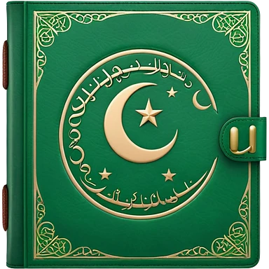 Closed Quran with the Islamic Symbol on it (moon and star) green from left to right emoji