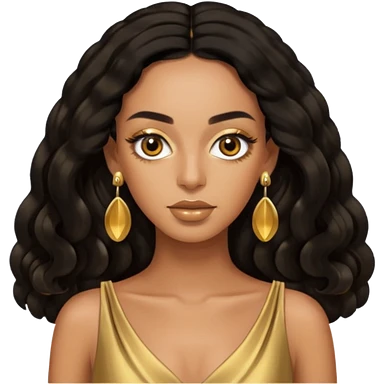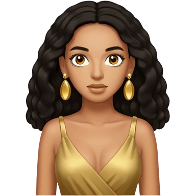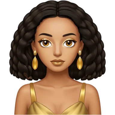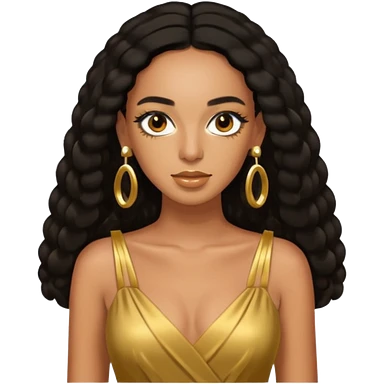 Solange brown eyes, black long hair, gold dress with earrings emoji