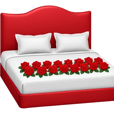 red Valentine’s Day bed with rose petals emoji