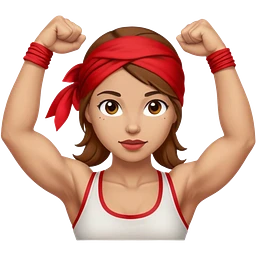 Rosie the Riveter, determined face, red bandana, blue shirt emoji
