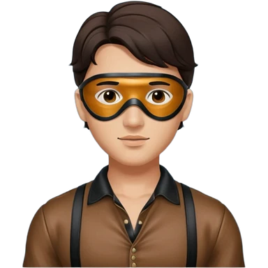 brunette young adult man with leather eye mask and leather halter neck blouse emoji