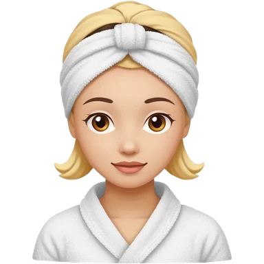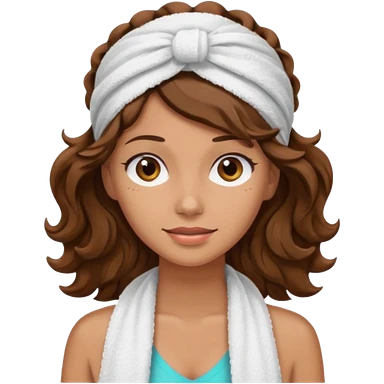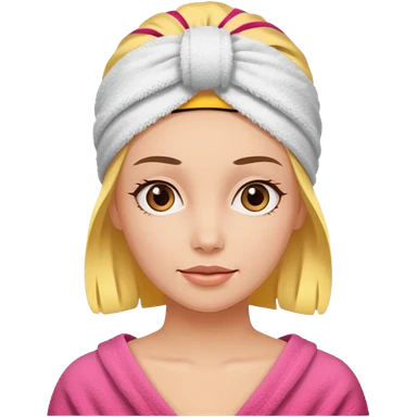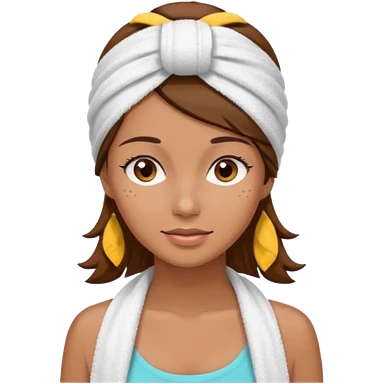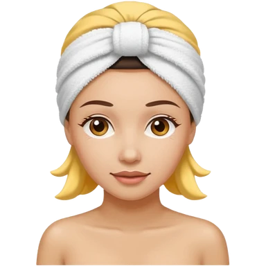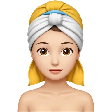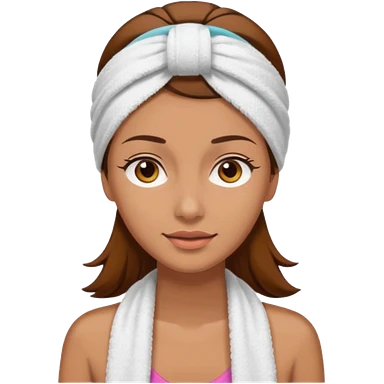 rosto de uma mulher com uma faixa de toalha no cabelo de cor todo castanho como se estivesse no spa, sem o pescoço emoji | AI Emoji Generator