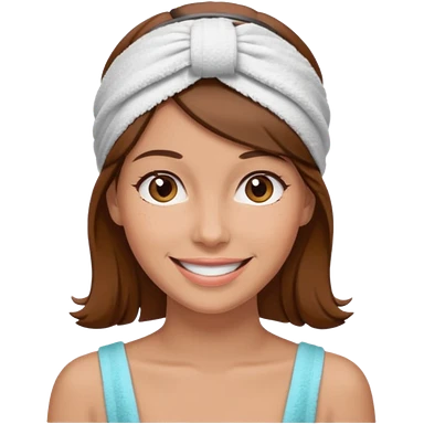 rosto de uma mulher com uma faixa de toalha no cabelo castanho como se estivesse no spa emoji