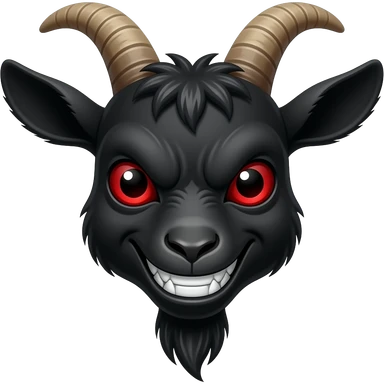 Rostro de cabra negra enojada viendo hacia frente con los ojos rojos con una sonrisa terrorífica emoji