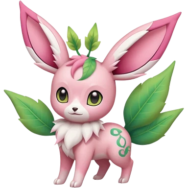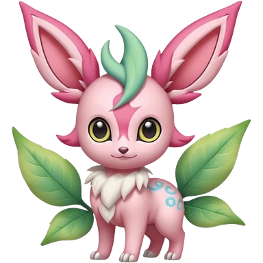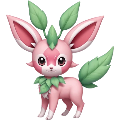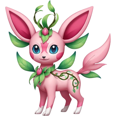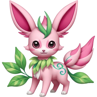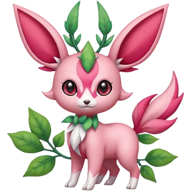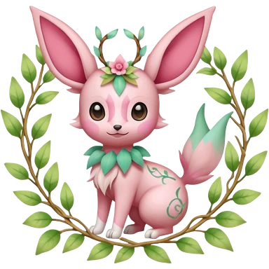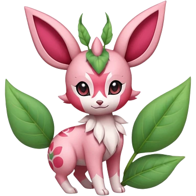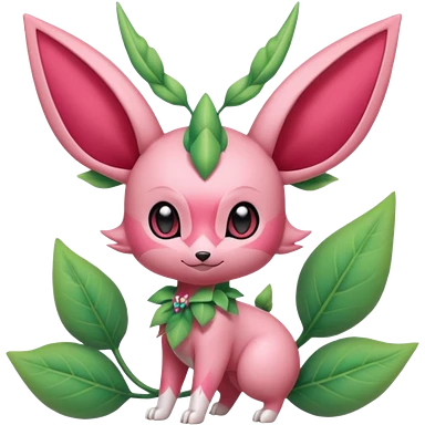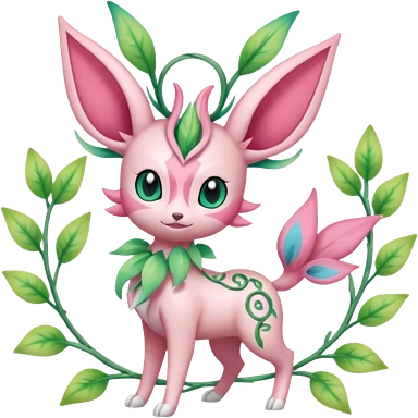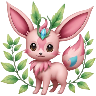 Rosy floral romantic cute Sylveon-Eevee-Celebi-Leafeon-Pokémon-Digimon-Fakémon-hybrid-fusion-creature with vines entangled around emoji