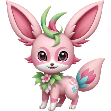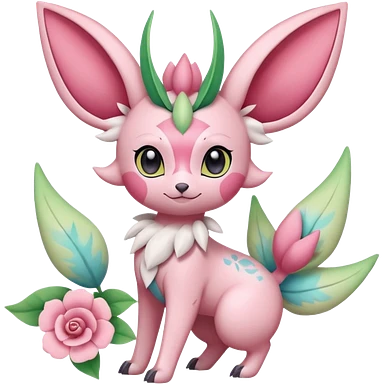 Rosy floral romantic cute Sylveon-Celebi-Leafeon-Pokémon-Digimon-Fakémon-hybrid-fusion-creature emoji