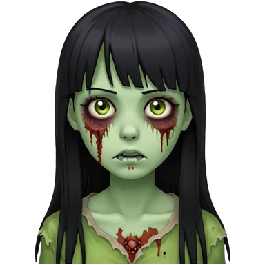 Zumbi girl pretty and Long, straight black hair with bangs, With a nose piercing emoji