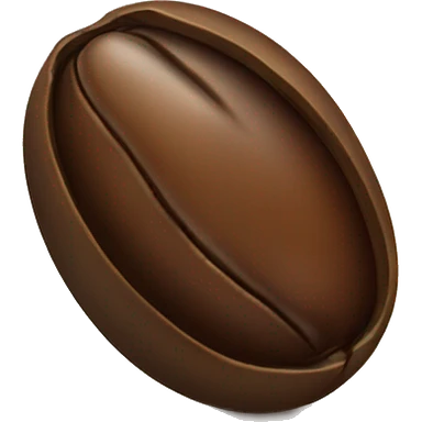 single coffee bean, three-quarter view, central groove visible, rich dark brown, subtle highlights and shading, smooth slightly glossy natural texture, realistic, non-anthropomorphic, minimal, 3D, soft shadows emoji