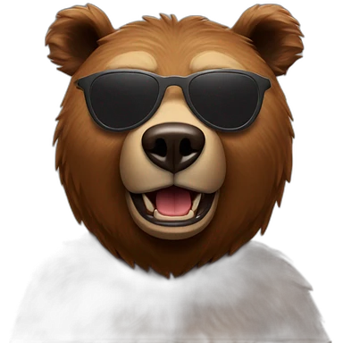 brown bear with round sunglasses, left iron arm and bitten ear emoji