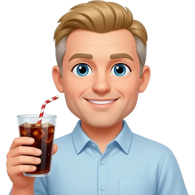 KEEP THIS MAN- MAKE HIM IN HIS 50S- GIVE HIM A COLLARED SHIRT AND BLOND SALT AND PEPPER HAIRSHOW ME A WHITE MAN --WITH A ROUND FACE-- HOLDING A CUP OF SODA emoji