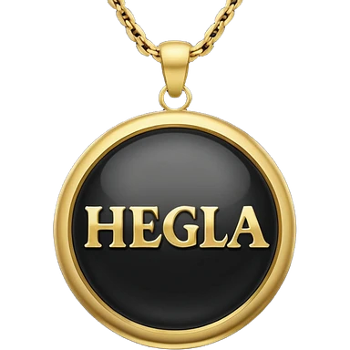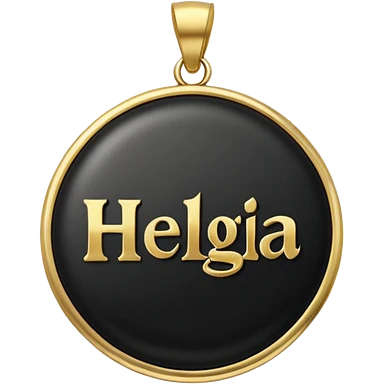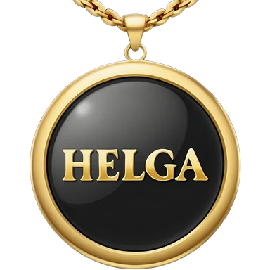 In black round stone of gold round pendant,the gold inscription "Helga" in large letters emoji
