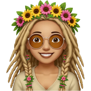 Woman with dreadlocks, round sunglasses, and flower crown. emoji