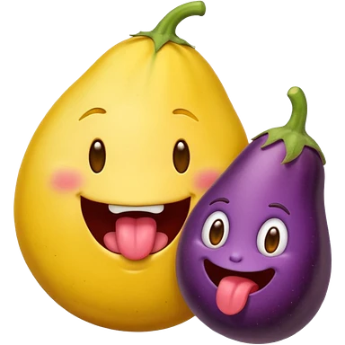 Round yellow emoji face with a tongue poking out, and an egg plant in mouth emoji