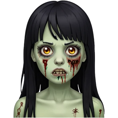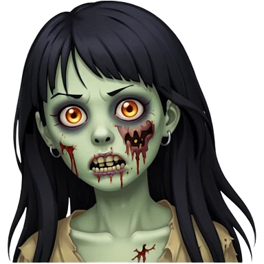 Emoji de zumbi mulher de cabelo comprido preto franja e piercing no septo emoji