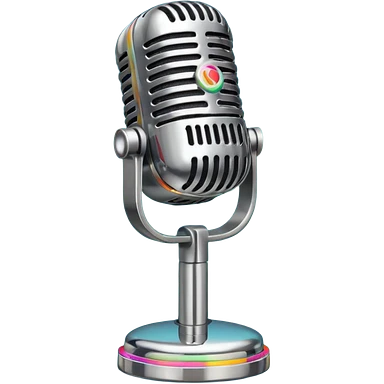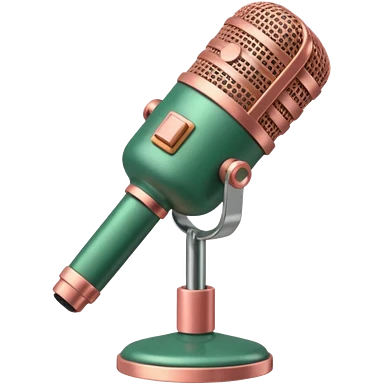 Microfono podcast vintage colorato verde scuro, rosa pastello e arancione emoji