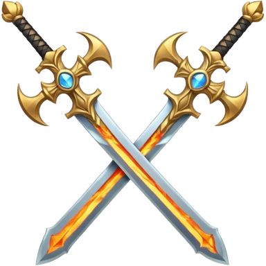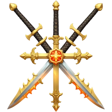 Royal looking two swords in a cross that have a slightly fiery look to them emoji