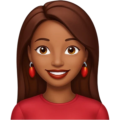 Rozonda Chilli Thomas medium dark skin long black straight hair, red tank top emoji | AI Emoji Generator