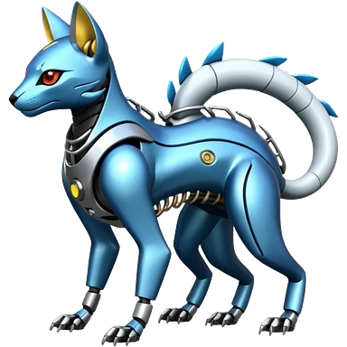 Mechanical shiny alloy metallic futuristic steel highly advanced technological cyborg cybernetic Genet-Absol-Zeraora-Primagen-fusion-creature emoji