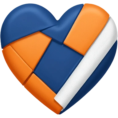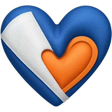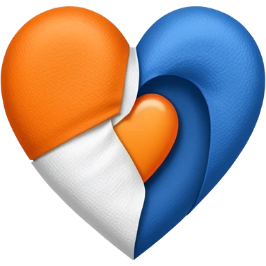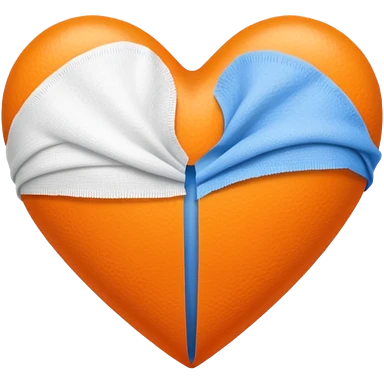 Half dark blue half orange heart split vertically, a white gauze stripe wrapping diagonally around the entire heart emoji
