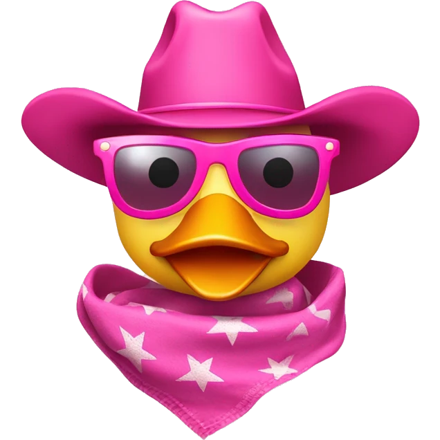 Rubber ducky wearing a pink cowboy hat, pink sunglasses, and a pink bandanna around its neck emoji | AI Emoji Generator