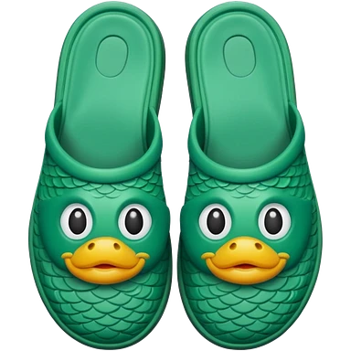 slightly green rubber pool slippers with carp eyes on the top and fish tail in the back emoji