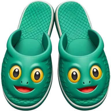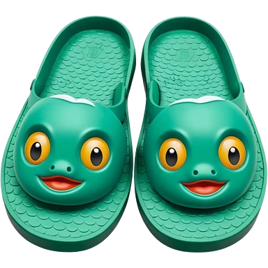 slightly green rubber pool slippers with carp eyes on the top emoji