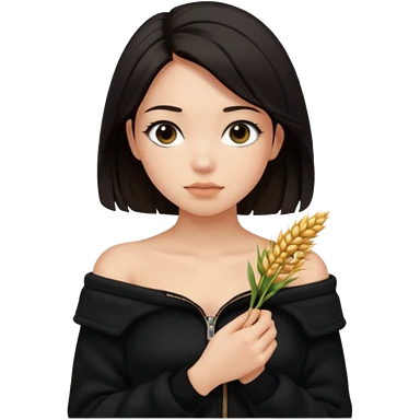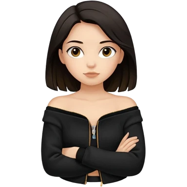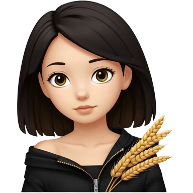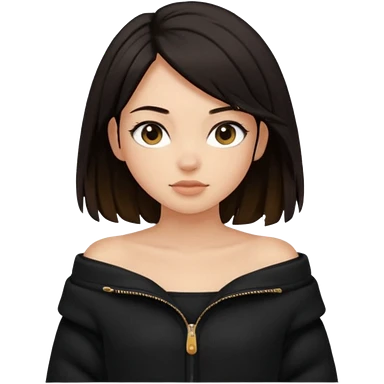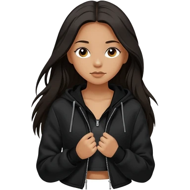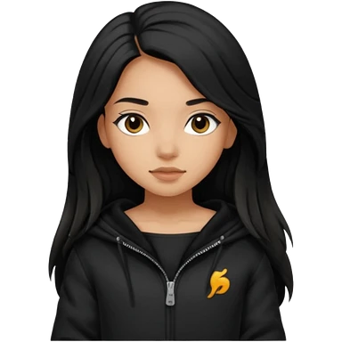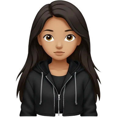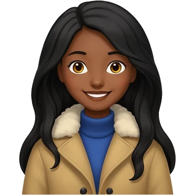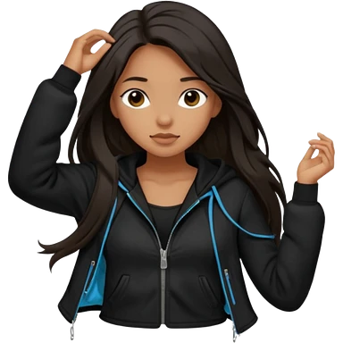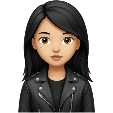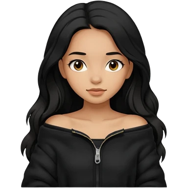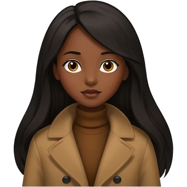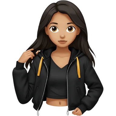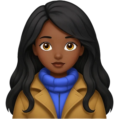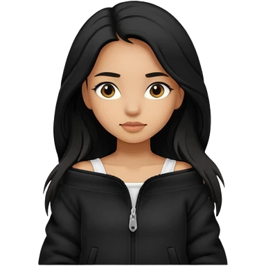 Siyah uzun saçlı ceket giyen esmerimsi kız fazla esmer değil siyah ceket polar ceket ceket gevşek biraz omzundan çıkıyormuş gibi ve bugday ten rengi emoji