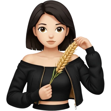 Siyah uzun saçlı ceket giyen esmerimsi kız fazla esmer değil siyah ceket polar ceket ceket gevşek biraz omzundan çıkıyormuş gibi ve bugday ten rengi soltaraftaki omzundan çıkık sadece içinde de siyah crop var emoji