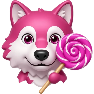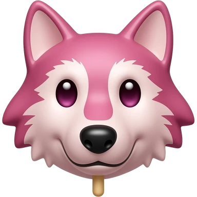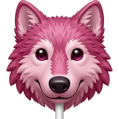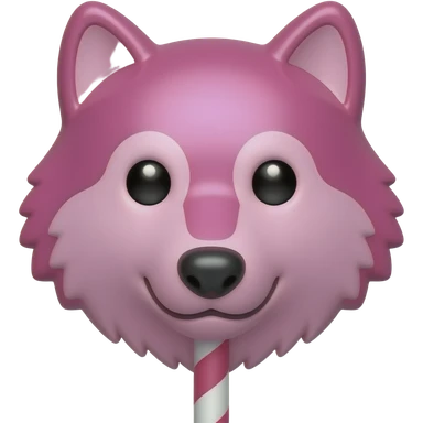 Ruby chocolate wolf face with long lollipop stick emoji | AI Emoji Generator