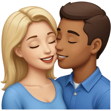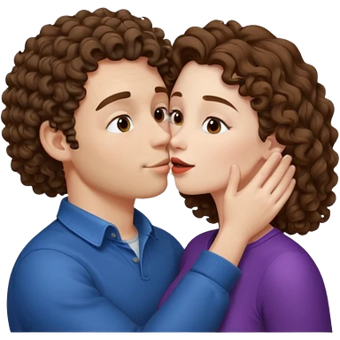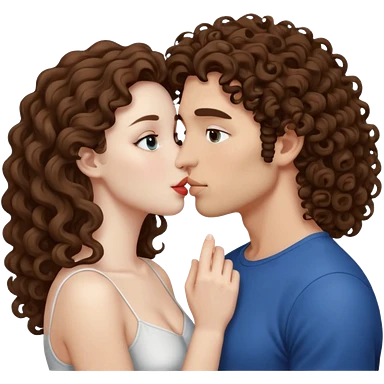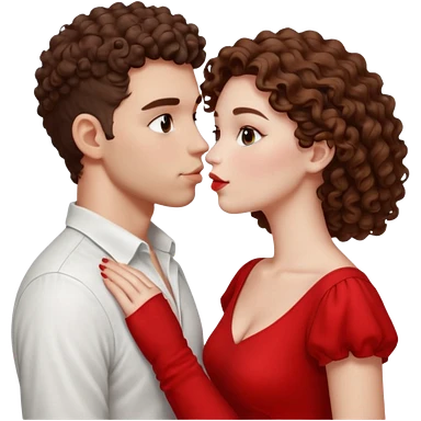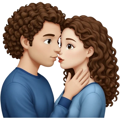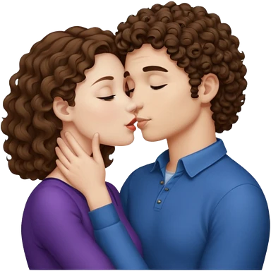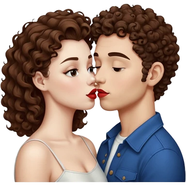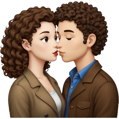 A couple kissing, the man would be white-skinned, mid fade-curly, brown-hair. The serious woman with white skin, brown color emoji
