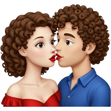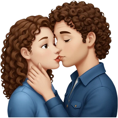 A couple kissing, the man would be white-skinned, curly, brown-hair. The serious woman with white skin, brown color emoji