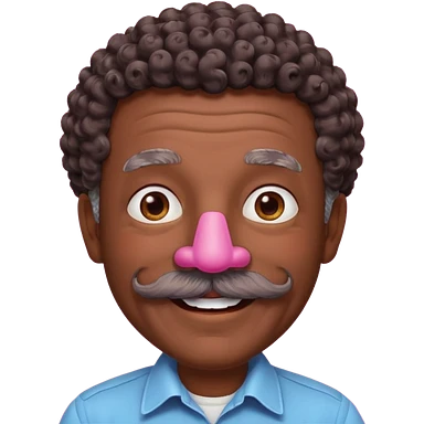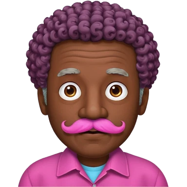 old guy with very curly hair and brown shades and big pink mustache emoji