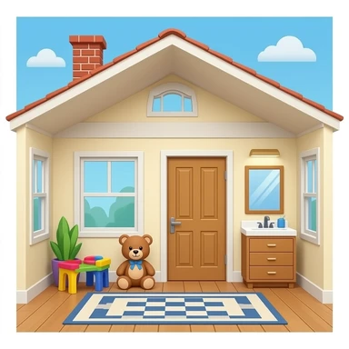 House: Glass for the windows, a rug on the floor, Bricks for the chimney, a big wooden door. I’ll even take a playroom or two you know what to do (teddy bear, and bathroom drawer and mirror emoji
